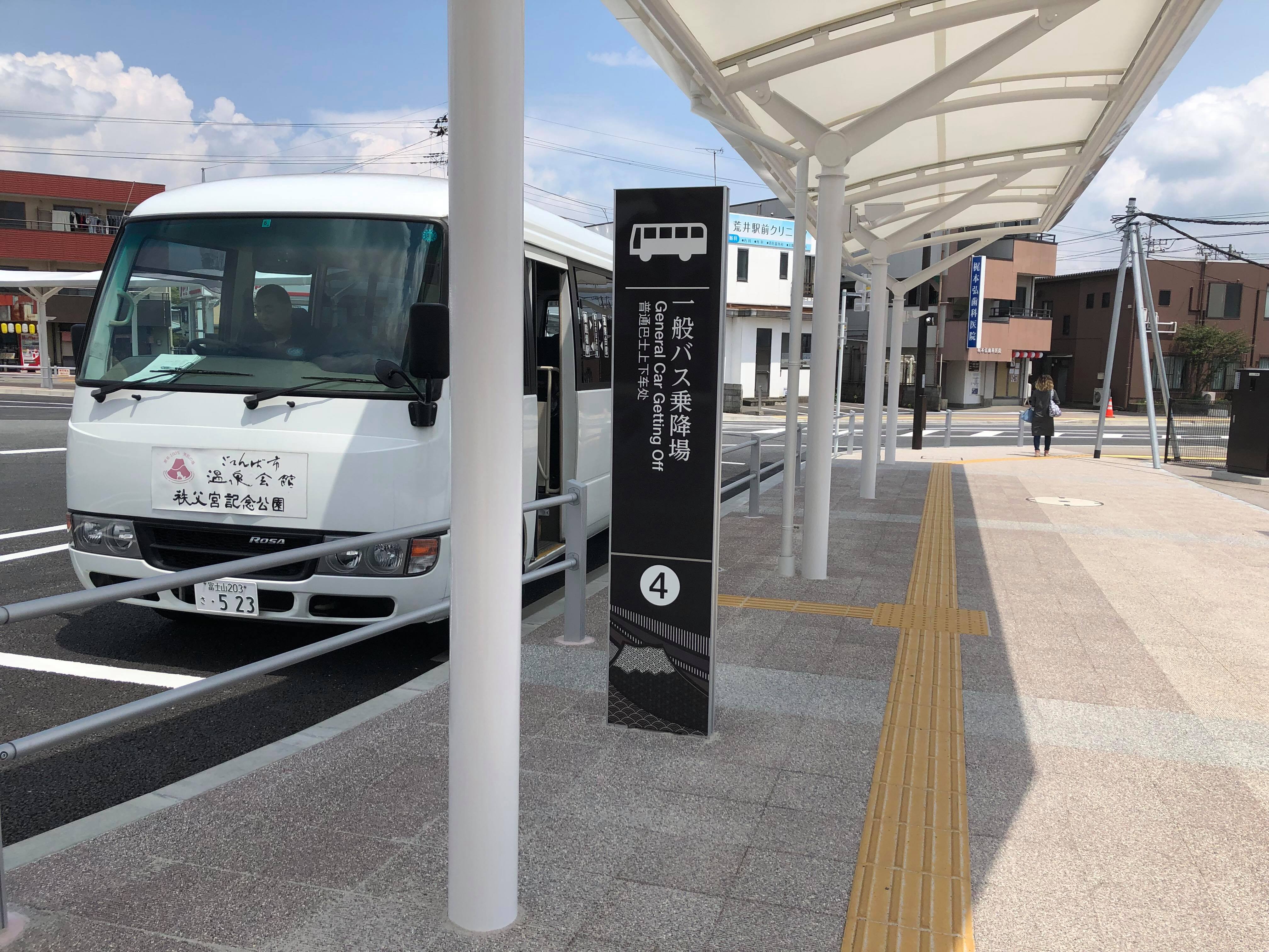 | 出発 | バス行先 | 時間/料金 | 停留所 | 停留所から徒歩 |