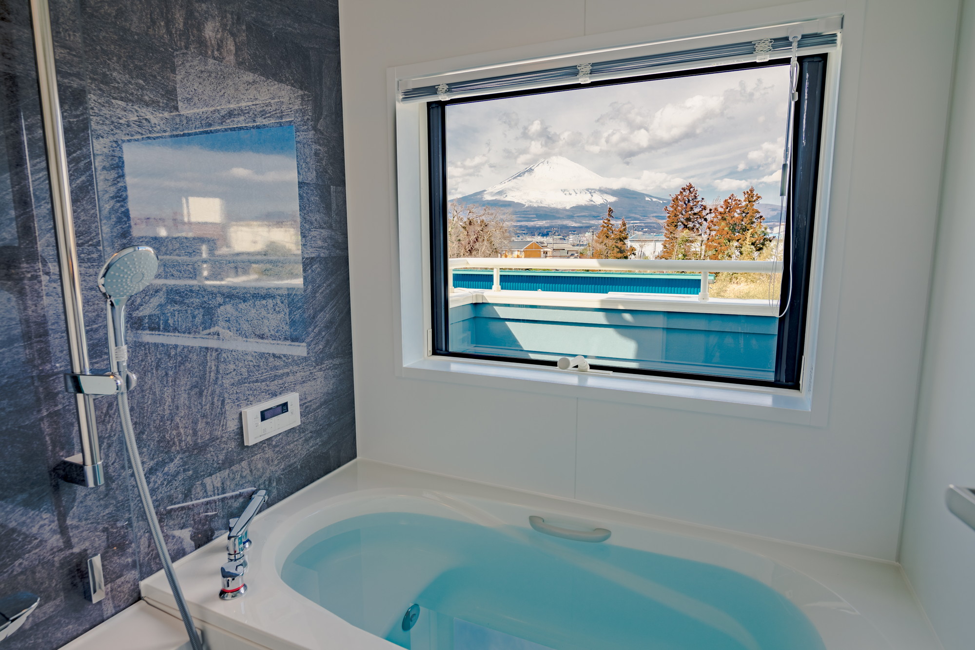 ゆったりとしたお風呂からは、富士山が眺望いただけます。ブラインドもございますからご安心ください。