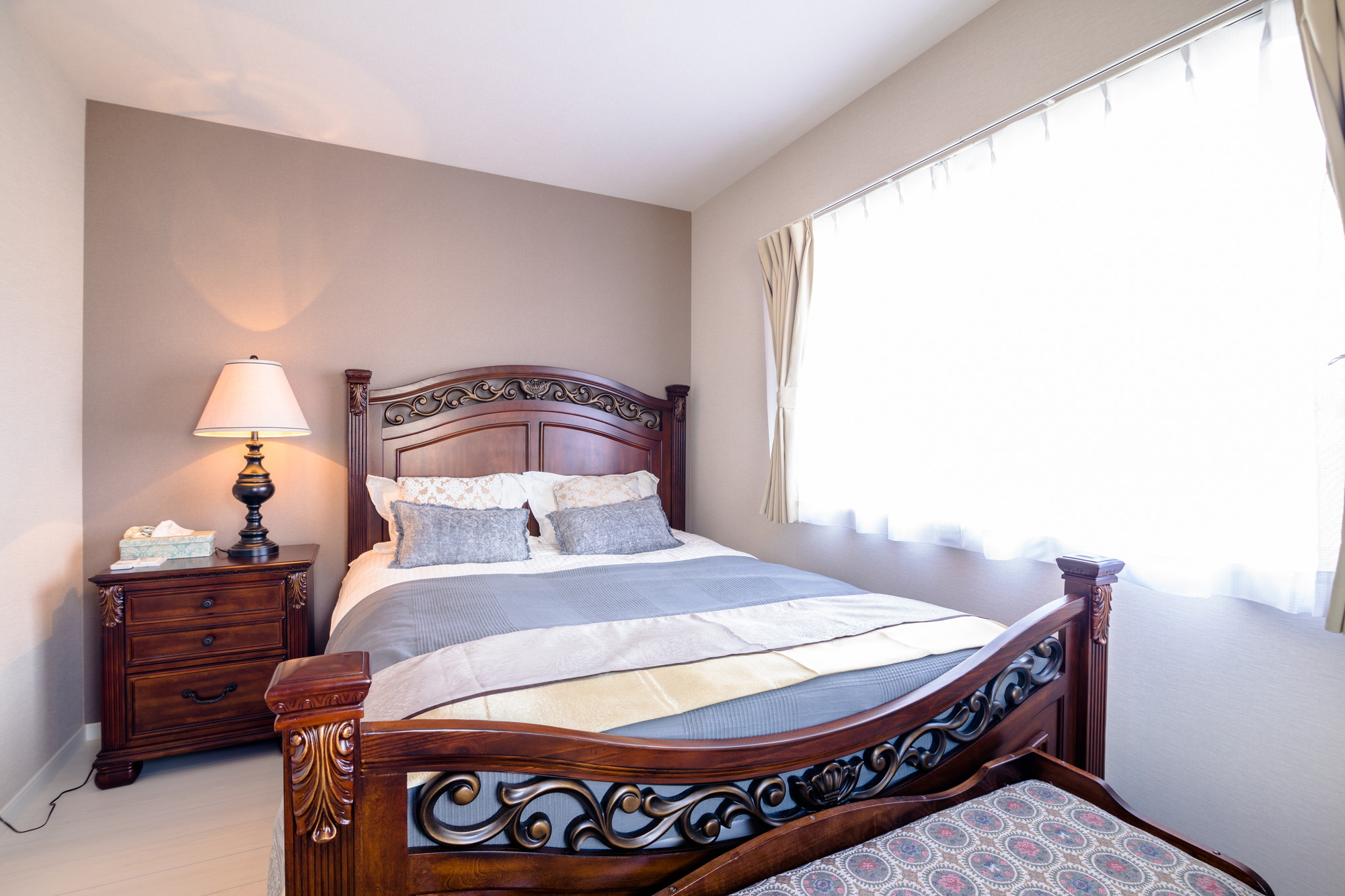 ダブルベット×1、セミダブルベット×1で、ご家族にも過ごしやすい寝室です。東南の2か所の窓からは明るい陽射しが差し込みます。