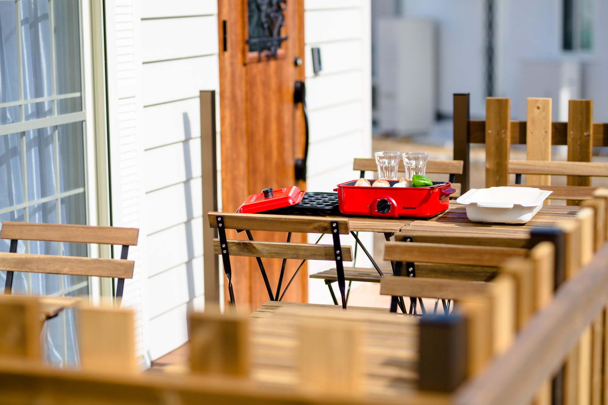 テラスでは天気のいい日にはバーベキューやティータイムなどお好きにお楽しみいただけます。